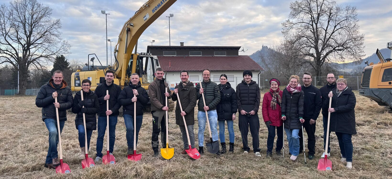 Am Freitag, 23.01.2026 fand der Spatenstich für den Neubau der Kita in der Bahnhofstraße statt. Bürgermeister Roman Waizenegger begrüßte alle Anwesenden, darunter die Vertreter der beteiligten Firmen (Architekturbüro Beuter, Beck Bau GmbH, Staiger & Schneider GmbH), Vertreter der Verwaltung, die Elternvertretung Eva Fux, die Gesamtkitaleitung Brigitte Schneider sowie Gisela Birr, Fraktionsvorsitzende des Gemeinderats.